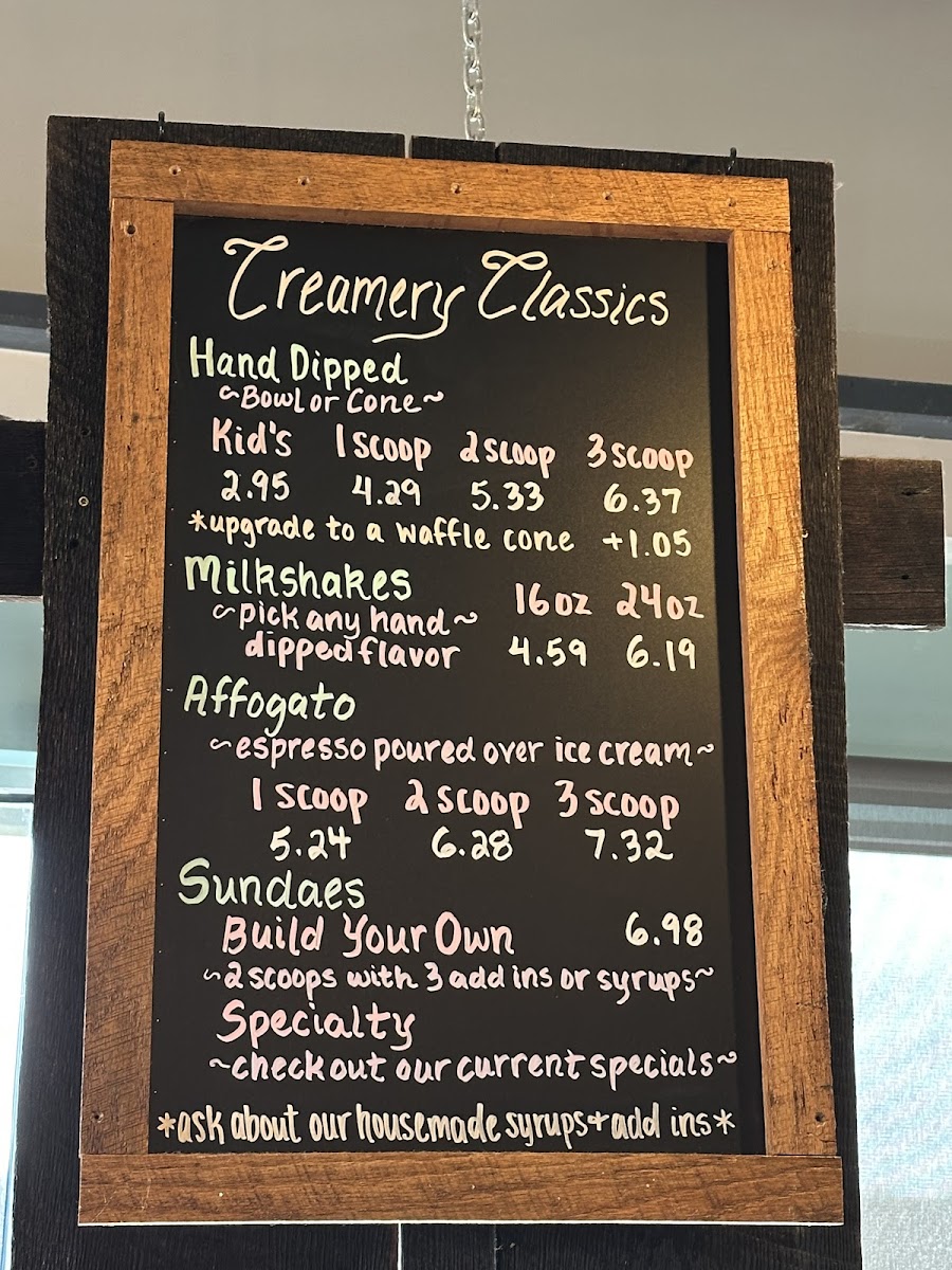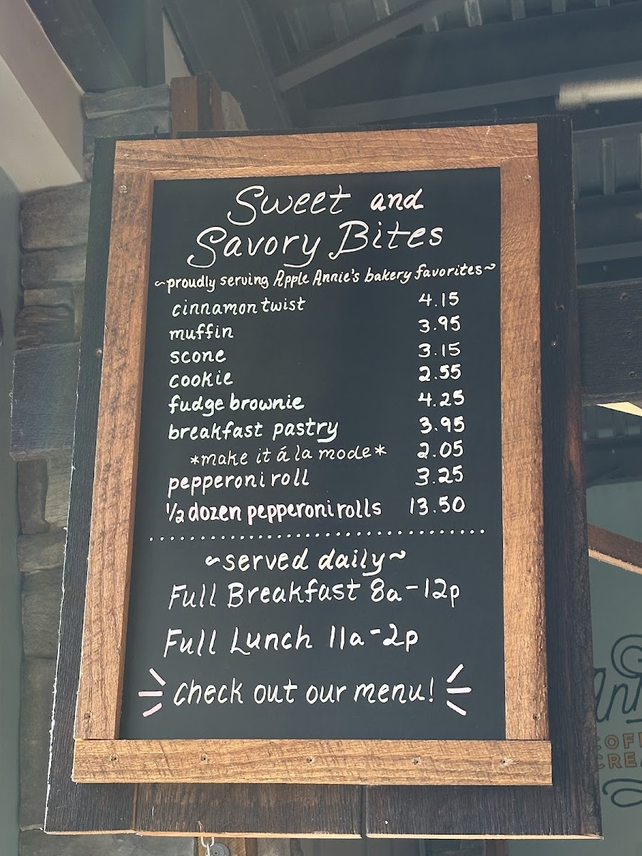 Satisfy your sweet tooth with Apple Annie’s Bakery favorites such as Cinnamon Twist, Muffin, Scone, and Cookie, or indulge in a treat from the Creamery Classics menu. You can enjoy a hand-dipped ice cream cone or bowl with 1 Scoop, 2 Scoops, or 3 Scoops. Additionally, Milkshakes are available in 16 oz and 24 oz sizes with any of the hand-dipped flavors, and for a unique experience, try an Affogato, where espresso is poured over your choice of ice cream.